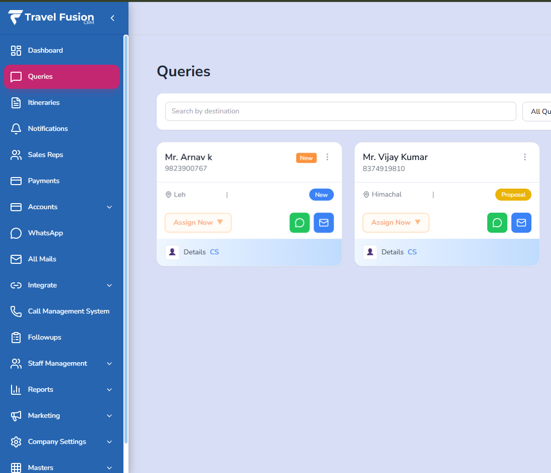 Built day-wise itineraries and sent professional quotations directly from CRM, reducing turnaround time.